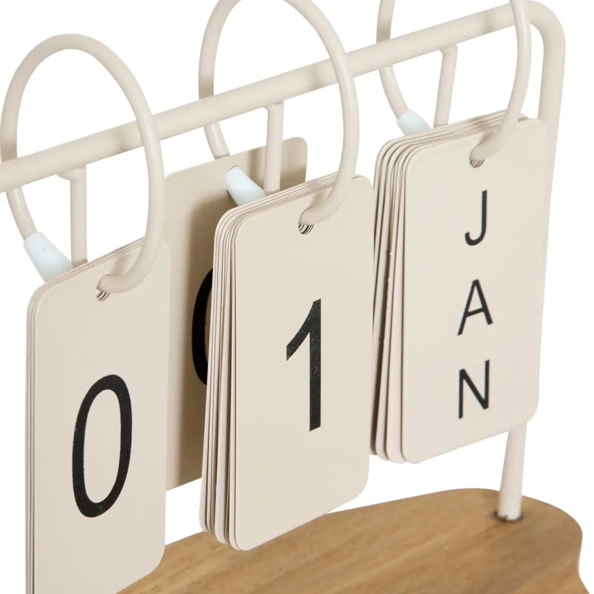 Calendrier Perpétuel en Métal Beige & Bois – Style Industriel Chic